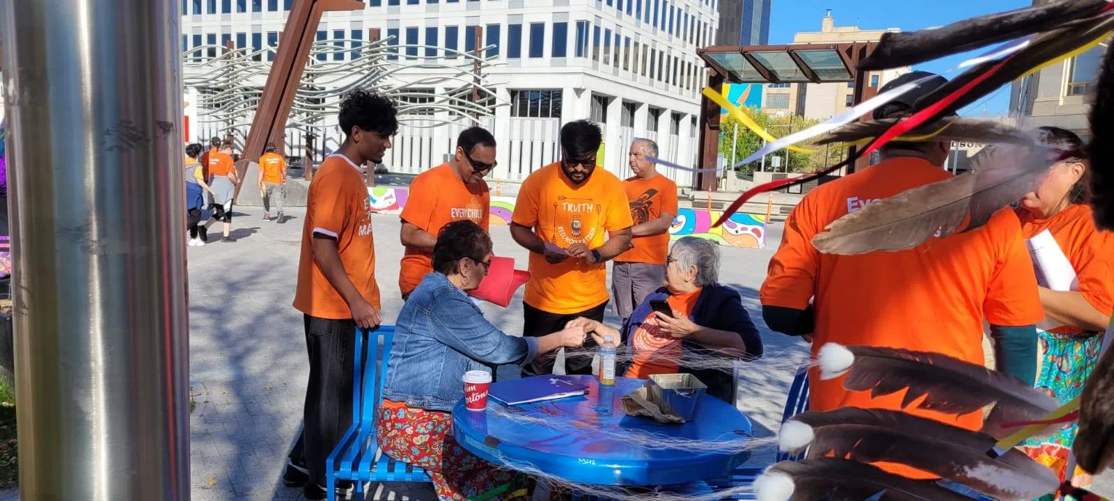Members of the Ahmadiyya Muslim Community participate in Tuesday's Orange Shirt and Circle Project Walk, in honor of Truth and Reconciliation Day. (Facebook)