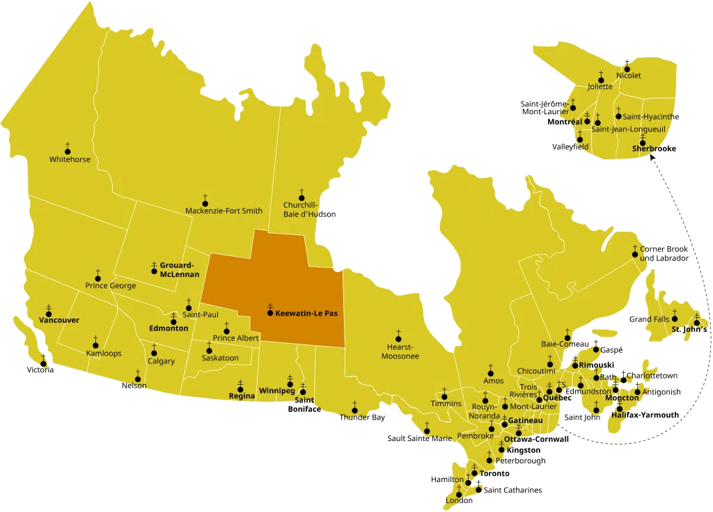 The archdiocese boundaries extend from the northernmost area of Saskatchewan, to north of Prince Albert, including Cumberland House.
